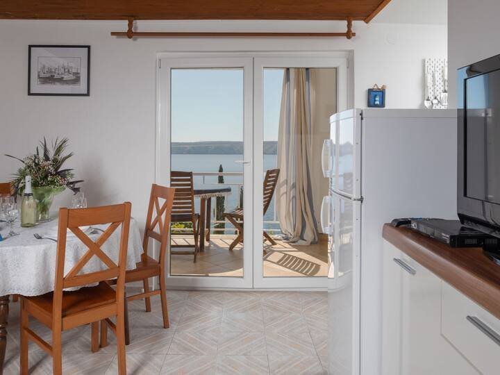 Open kitchen (mini-oven, dishwasher, 2 induction hot plates, toaster, kettle, freezer, electric coffee machine). Shower/WC. No heating option. Balcony. Balcony furniture. View of the sea. Facilities: Internet (WiFi, free). Please note: non-smokers only.