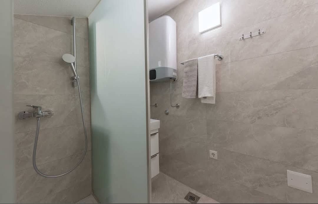 The apartment features two comfortable bedrooms and two modern shower rooms, offering privacy and convenience for all guests. It also includes a bright living area and a fully equipped kitchen, perfect for relaxing after a day of exploring the region.